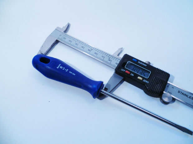 Medir el mango de un destornillador que se ajuste bien a tu mano. Luego medir el vástago del destornillador barato.