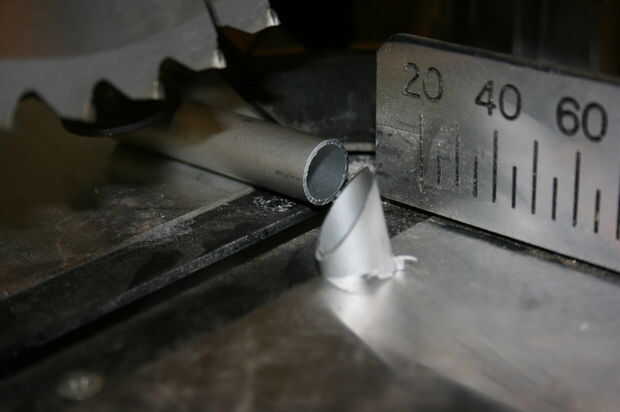 Para el protector de la viga puede cortar un pedazo de tubo de aluminio en un ángulo de 45 grados.