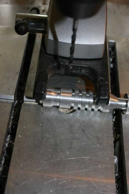 Un agujero donde va el tornillo de ajuste. Luego use su llave de grifo para hacer un hilo en el orificio taladrado que se adapta a su prisionero.