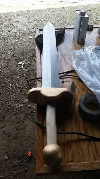 Originalmente no iba a hacer esto un instructable principio carece de fotos. de todos modos, la hoja está hecha de un trozo de 2 x 4 Ripeado en aproximadamente un ángulo de 30°. Tomó muchos intentos para que se vea bien. Una vez que tenía la derecha de la hoja que i parte previsto la punta y el mango. Talladas a la guardia de un pedazo de 4 x 4. Y spray había dolido el plata y el oro por separado.