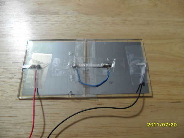 Tome su solar panel(s) y conéctelos en serie... saltatelo si está usando uno. La soldadura de dos alambres de los extremos y se hacen con el conjunto solar.