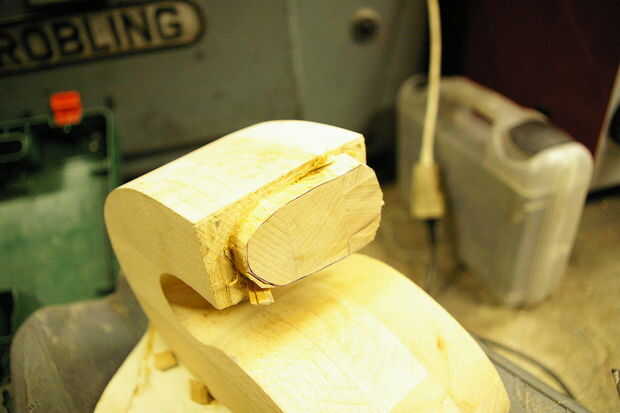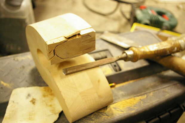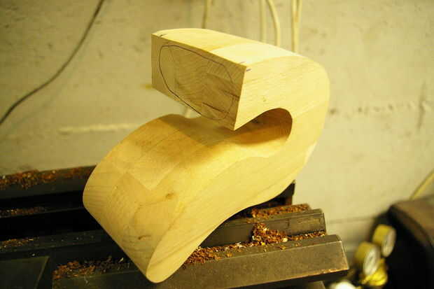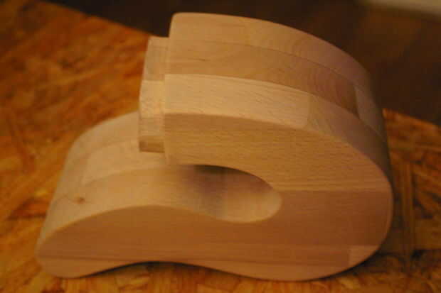 El soporte se hace de tres discos de madera de haya, cortada con una sierra de vaivén habitual.