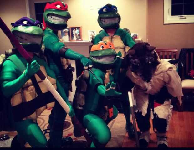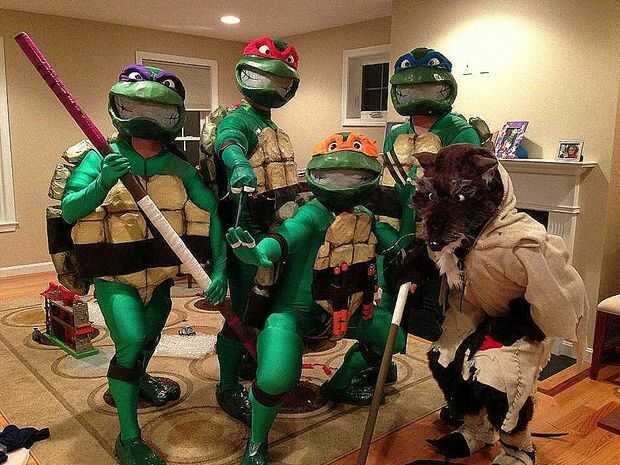 The Teenage Mutant Ninja Turtles and Master Splinter home-made group costume. Este proyecto era demasiado grande para crear un instructivo paso a paso, por lo que acabo de añadir fotos en orden de principio a fin por sección para que pueda ver los pasos para crear cada parte del traje.