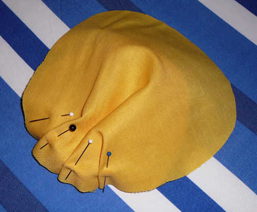 Para este paso, me cubrió y atractivas hasta que llegué el círculo como yo quise. Podría tomar varios intentos para obtener el cuelgue de ella. Sobre cada mitad una pulgada más o menos, tomé una aleta pequeña de la tela del círculo grande y doblé sobre que hace un pliegue y luego lo cubrió para el círculo más pequeño para crear la forma redondeada. He dejado unas dos pulgadas o lo liberará por lo que podría dar vuelta la derecha núcleo hacia fuera una vez cosido juntos.