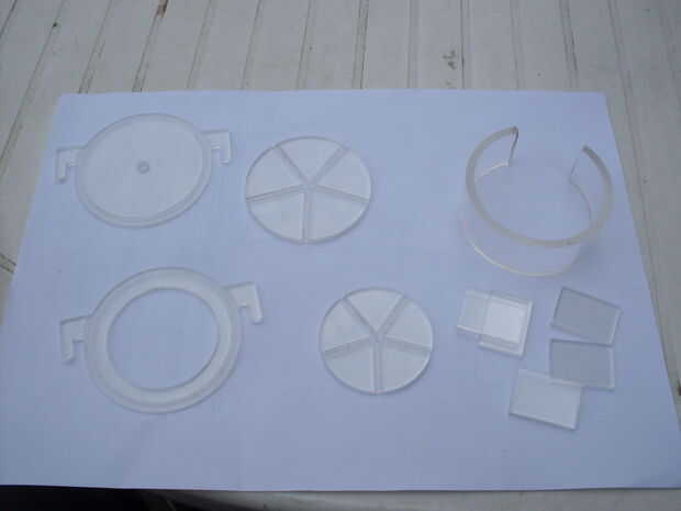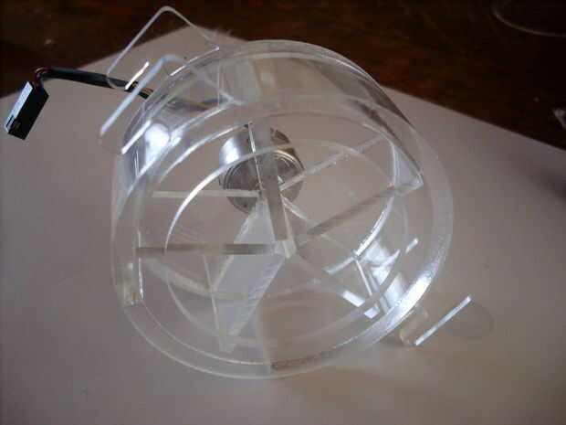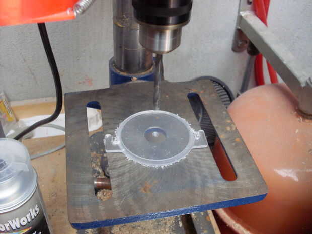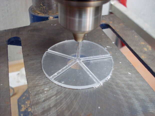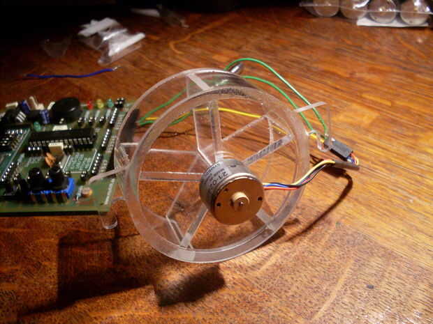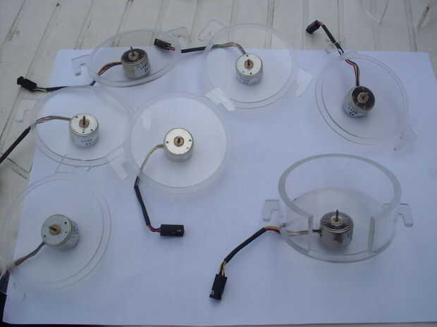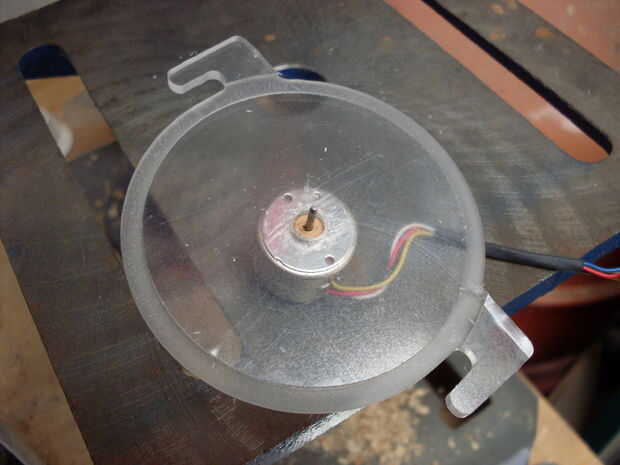 En el panel trasero se perforó un agujero de 5,5 mm, que puede montarse el motor. En el interior fue perforado disco un agujero de 1mm por lo que puede ser pegado en el eje del motor de 1, 5 mm.