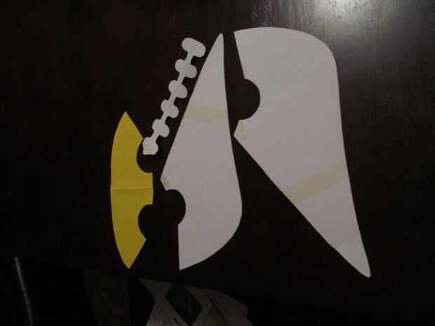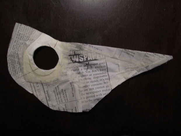 Una vez que se cortaron los pedazos individuales de la base de la máscara hacia fuera se reunieron y los agujeros fueron perforados a lo largo de la costura con un sacador de agujero pequeño.