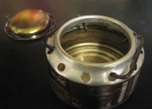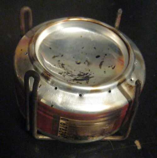 También hice un soporte que se ajusta perfectamente alrededor del exterior de la estufa, simplemente doblando algunos alambre de percha para formar cuatro patas, que también pueden utilizarse para sostener la tapa, para el almacenamiento, cuando la estufa no esté en uso. Ver fotos.
