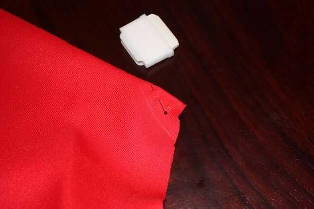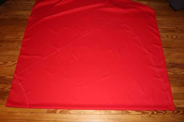 - Eliminar una gran parte de su piso y colocar a la tela roja, doblado por la mitad con las marcas de orificio del cuello emparejadas para arriba.