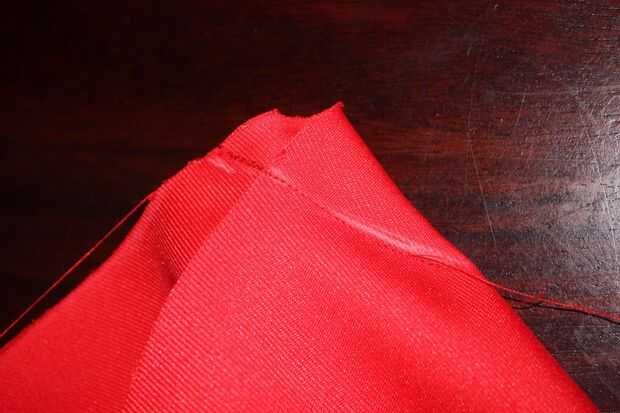 - Doblar a la tela roja por la mitad, abrirlo y luego cuelgue alrededor de sus hombros.