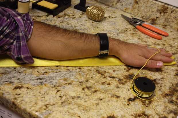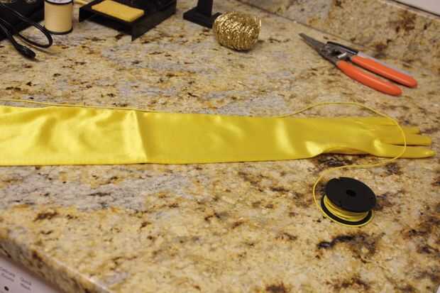 El cableado de los guantes es relativamente sencillo y fiel a las instrucciones en Adafruit para NeoPixels. Sin embargo, dado el arreglo dentro del guante y cómo apretado todo lo es, no podemos usar hilo conductor. Puesto que el hilo conductor no es una opción, lo mejor por algo flexibles como un guante es de alambre de silicona. Alambre trenzado de silicona permite una flexibilidad mucho mejor sobre alambre estándar y añade resistencia sobre cable de núcleo sólido.