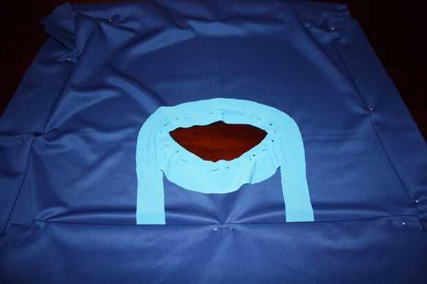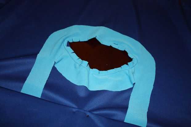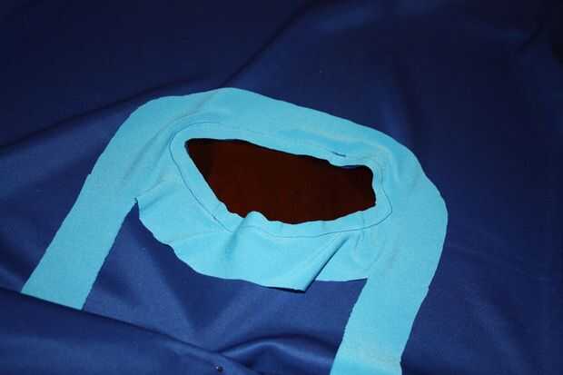 9. Empuje al tejido de aplique a través del orificio del cuello y despliegue a lo largo de su túnica