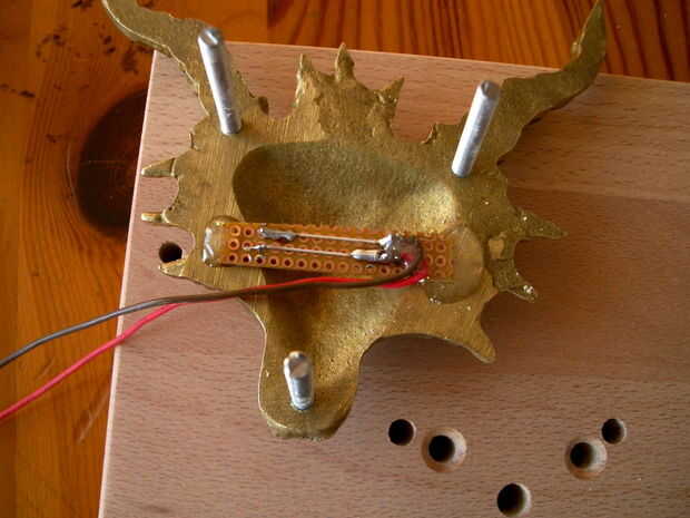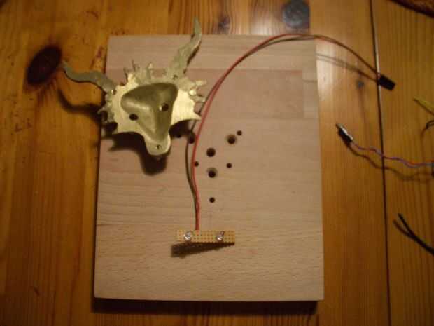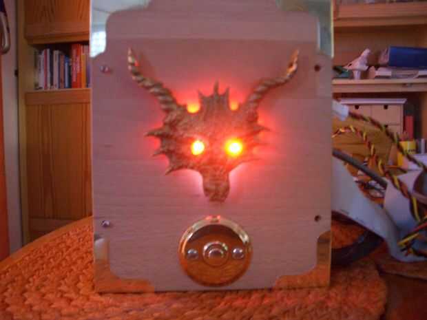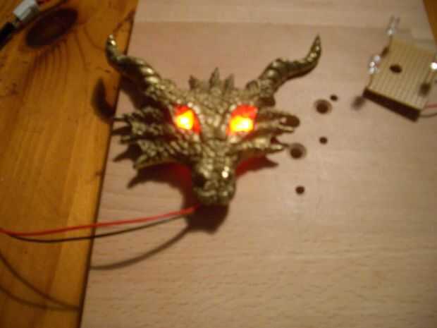 En un pequeño PCB había soldado dos LED´s rojos para los ojos. Estos LED´s se conecta al conector del HDD de la tarjeta principal.