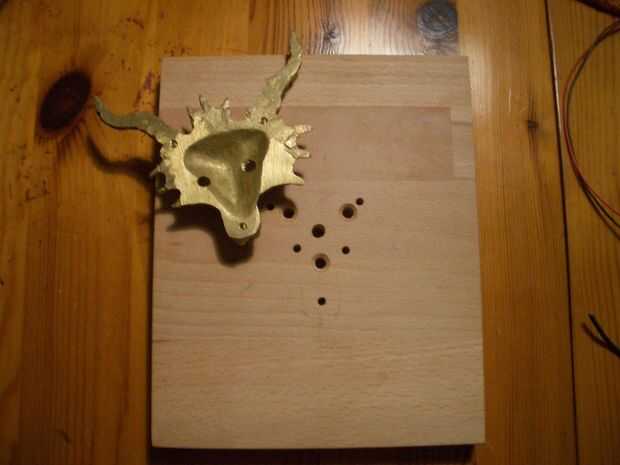 Luego perforé los orificios para la luz de fondo LED´s para los cables y para el montaje de la cabeza.