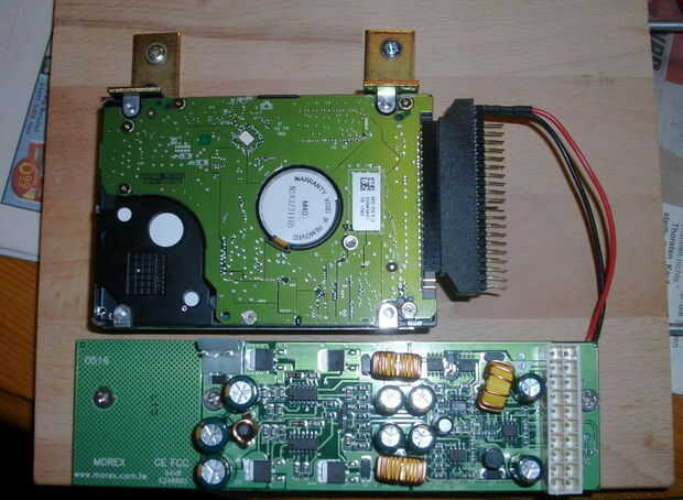 Luego había montado el disco duro y la fuente de alimentación, cuadro 2-4. El PS es conducido por 12V externa.