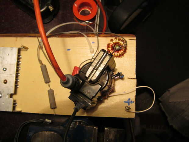 aquí hay algunas fotos de mi controlador de 555 temporizador flyback con dos de mi índice de flybacks. Por desgracia, no tengo las piezas para construir un driver ZVS de flyback, por lo que decidí mejorar mi controlador existente. La configuración si