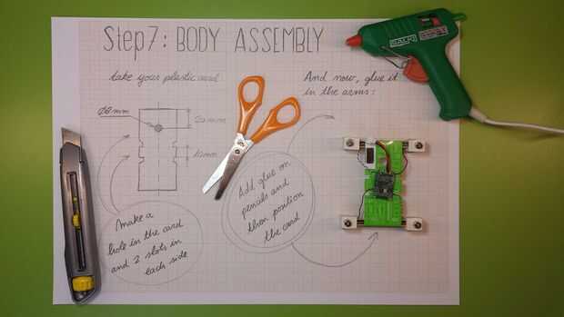 Cortar la tarjeta de plástico y pegar a los brazos de lápiz.