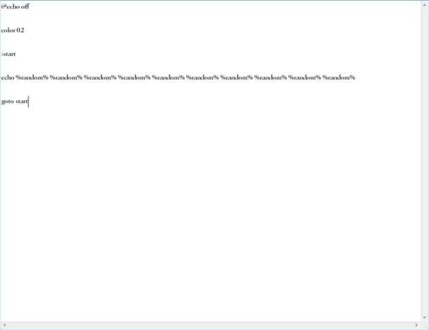 Guarde el archivo con extensión .bat como Matrix.bat eso es él. Simplemente abra el archivo para ver el efecto de la matriz ante tus ojos!