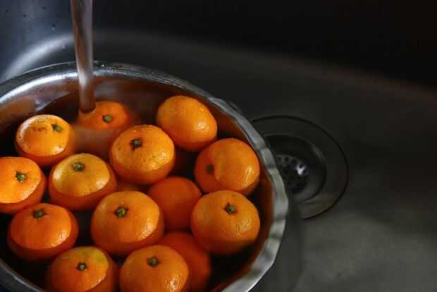 Tus naranjas lavadas en un colador y deje secar completamente.