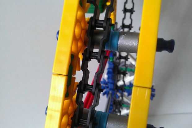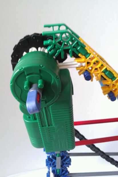 Pongescalator de NK el Levante era el mecanismo clave en mi proyecto de NK Sideliner. Sigue un diseño de escalera mecánica simple, con una cadena de Mini-K'nex empujando hasta pelotas de ping-pong ligero en la parte superior. Levanta sobre un pie y puede utilizar cualquier tipo de motor. Sólo dos engranajes de cadena son necesarios, y son el único "piezas inusuales" en esta elevación. La pista de entrada mantiene la pelota de ping-pong en su lugar hasta que se levanta para arriba y puede conectarse a cualquier otro elemento. Esta elevación es pieza eficiente, robusto y rápido y muy fácil de construir, (especialmente con las fotos). Cualquier persona que desea construir este elevador y no puede hacerlo con sólo las imágenes que he proporcionado es Bienvenido a preguntarme (Nerfrocketeer) cualquier duda que tengan al edificio. Gracias por mirar el Pongescalator NK Levante y tenga la oportunidad de utilizar en su próxima máquina de bolas de ping pong!