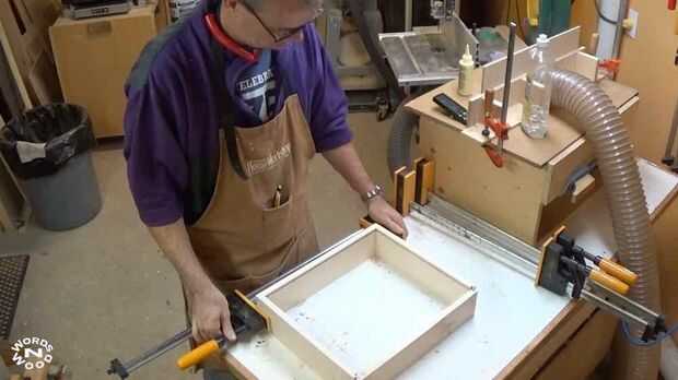 Nada de eso fue filmado, como el enfoque de este artículo estaba en la carpintería. Con las piezas del cajón listas, ahora es sólo una cuestión de agregar pegamento a los extremos y luego alinging y las piezas de sujeción. Me deslicé en el fondo de madera contrachapada inmediatamente, ya que ayudan a asegurar que el cajón esté a escuadra.