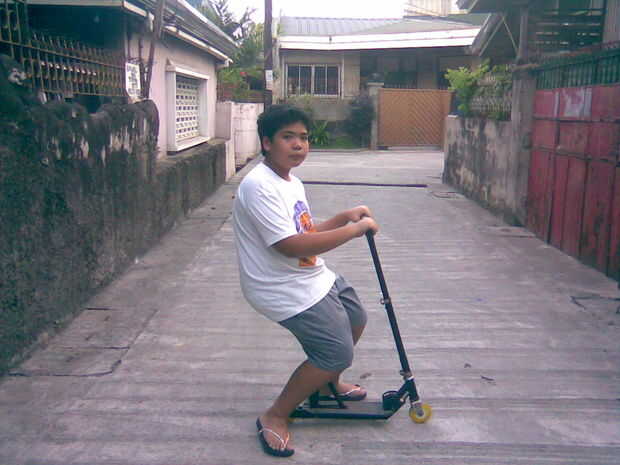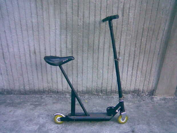 casa de mi hijo arrastrado un poco doblado encima de la vespa de empuje que encontró en el lado de la carretera.  Tenía ruedas pequeñas que no podrían rodar en la arena y el marco de la raspada en cada baño y el agujero.Decidimos que no era el ajuste