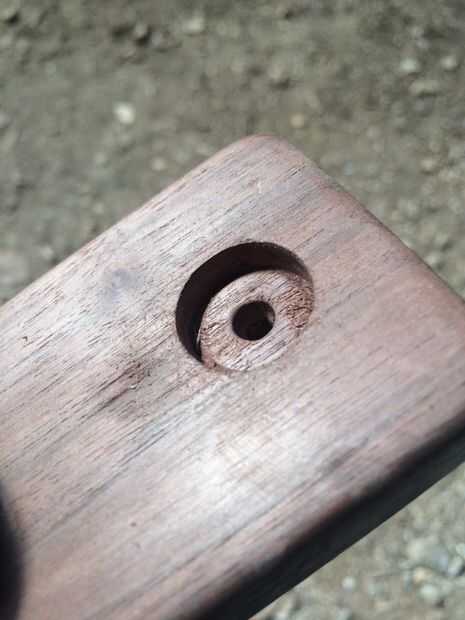 Luego tomar una pala de 3/4 de pulgada del pedacito y perforó un agujero aproximadamente 3/8 de pulgada en la madera. Ahora puedo poner en mi tornillo y luego tápelo con la cáscara de tiro de pistola.