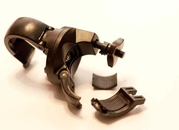 Es el momento de encontrar una buena manera de conectar nuestro equipo al eje del trípode. Que tome algunos días para venir a mi mente, pero entonces recordé que tengo algunas juntas de plástico para conectar una linterna de LED para el manillar de la bicicleta, o algo similar. Yo he comprado algunos de ellos por unos $ (€ aquí) y soy tan afortunada de tener uno roto, que puedo usar la mitad funcional, uno con la cerradura rápida. El diámetro es adecuado para el eje del trípode.