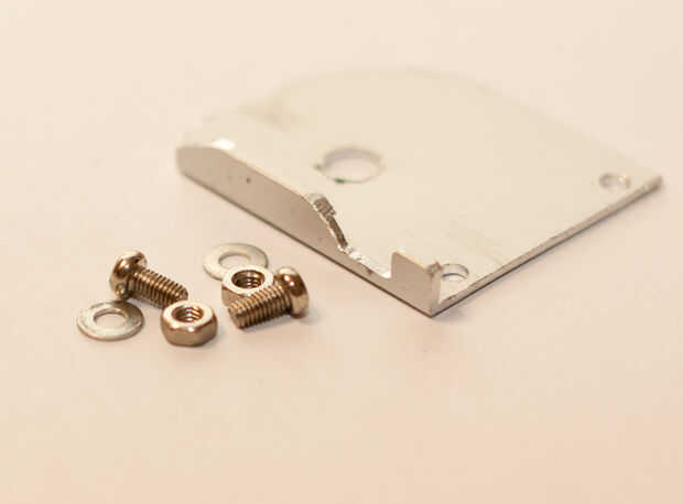 Para conectar mi unidad motora a la abrazadera lo he utilizado una placa de aluminio, donde he perforado tres agujeros y hacer lo necesario con la abrazadera del lado plano. No lo veo en la foto pero si cortar una fractura en el borde redondo de la pinza y hacer el lado doblado de la placa de aluminio encajan, a obtener que la placa no podía girar alrededor del eje del tornillo, y que todo esté mejor.