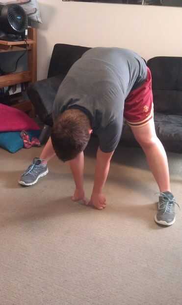 > Llegan y tocan el suelo. Si usted no puede tocar el suelo, mantenga los tobillos.