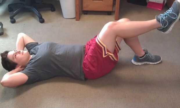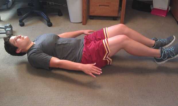 -Pone a la cabeza, hombros y piernas ligeramente fuera de la tierra. Mantenga las rodillas dobladas a unos 120 grados.