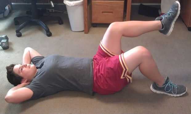 -Permanecer en el piso con la pierna derecha en el aire doblado a 90 grados.
