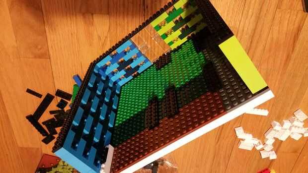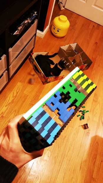 juego de ajedrez de Lego este es tan pequeño cabe en la palma de mi mano! Es un juego de viaje grandes porque las piezas no caen e incluso hay un cajón de almacenamiento para cuando hayas terminado jugando. Este sistema de ajedrez de lego está hecha