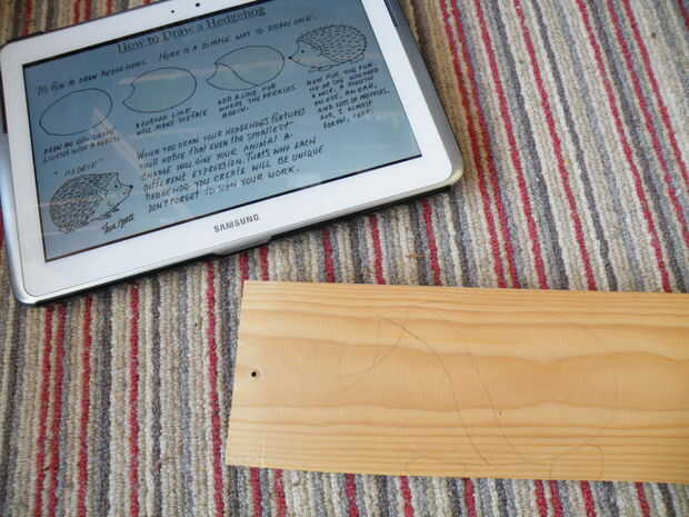 Dibujé el contorno a mano alzada, directamente sobre la madera, pero dejó las espinas, ya que haz agregados más adelante.