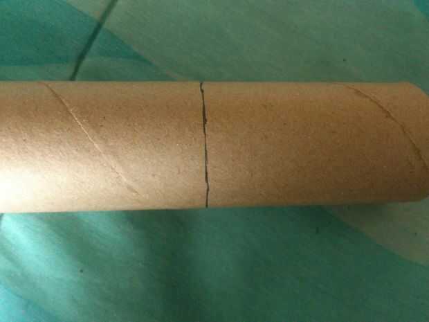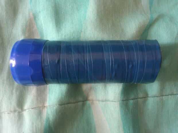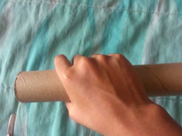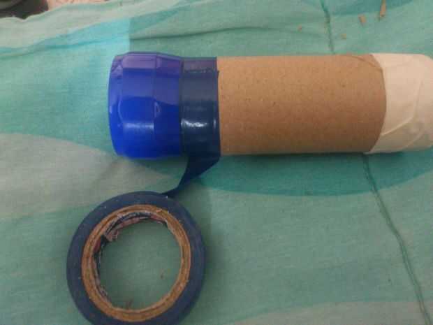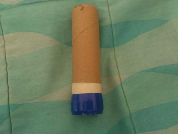 Tomar el rollo de cartón y medir el tamaño de la empuñadura con la mano. Utilicé una parte de repuesto de la antorcha para hacer la base.