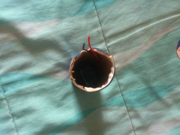 Me corte un círculo de cartón e hicieron un agujero en ella. Hice lo suficientemente grande como para que la tubería encajaría cómodamente en él. Entonces, tuve que conectar la batería a la tira de LED.