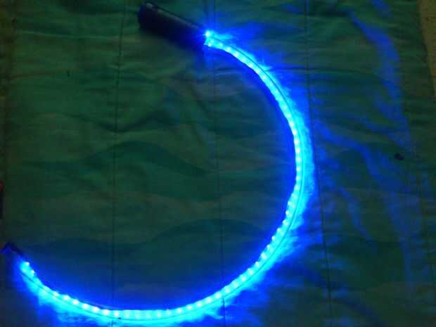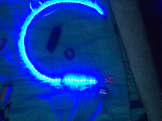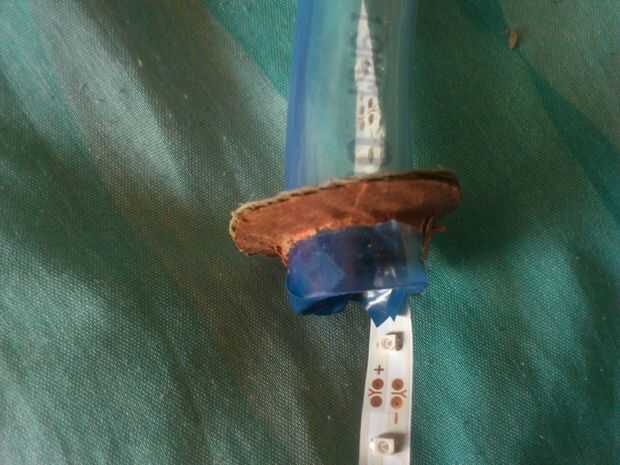 Luego, poner la tira del LED a través del tubo y había pegado al final. Había fusionado los extremos del tubo. Conecté todo y poner la batería en el tubo. Me pegué todo juntos firmemente. Y su hecho!