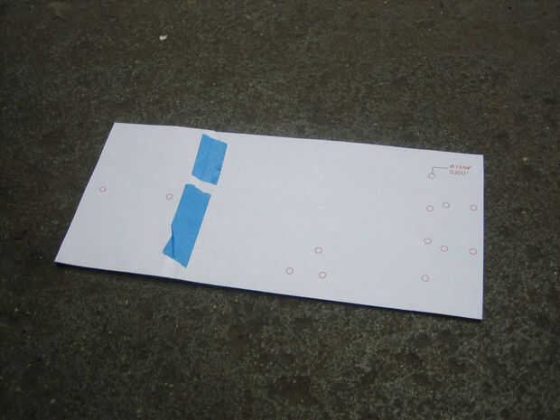 1. descargar este archivo PDF e imprimirlo a escala real. Utilícela como una plantilla para ayudarlo (a) cortar un 6 pulgadas por panel de 13,5 pulgadas fuera de la handyboard 1/8 de pulgada y (b) taladro varios agujeros usando una broca de 3/16 o 13/64.