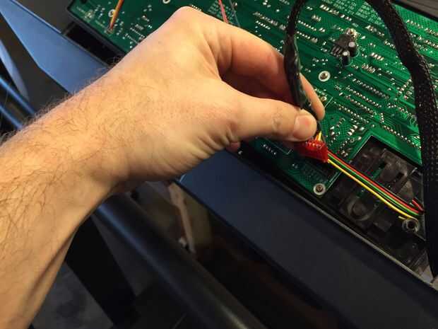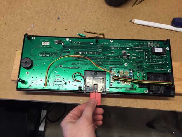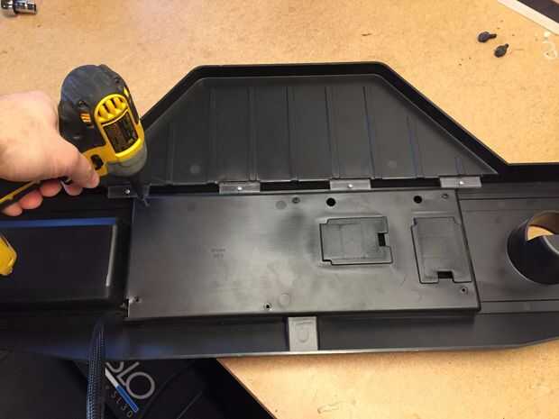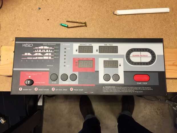 La parte superior de la cinta ya fue roto desde el dueño anterior y solo se cayó. Luego lo volcó y desenroscar los controles del cuerpo plástico. Ahora pude ver que los controles no eran un tablero grande, dividir los controles o quitar las partes que no quiero. También sólo un alambre enchufe de conexión a la base de sustentación. Tendrá que ir como-es, que todavía no es demasiado grande, 16 "x 6".