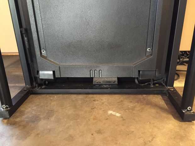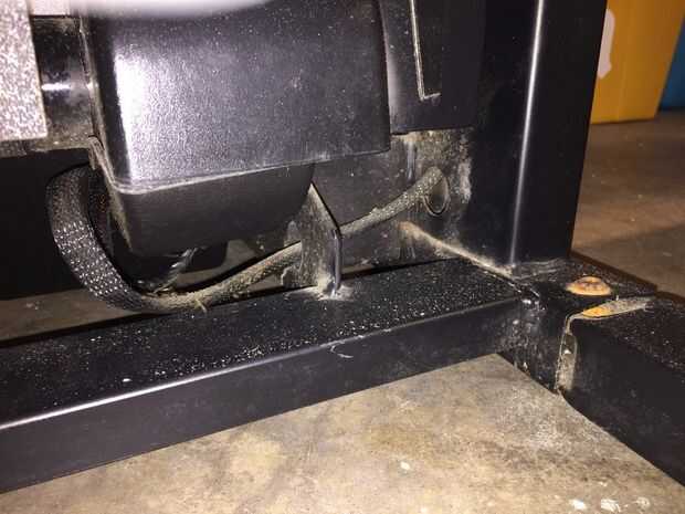 También tuve que redireccionar el conector del cable al panel de control desde la derecha a la izquierda. Tiró de los cables por la parte inferior de la tubería de apoyo de la derecha. Entonces corrí los cables a través de un orificio existente en el marco inferior de la cinta. Mi primer pensamiento fue correr los cables por el lado izquierdo con lazos de alambre, pero más tarde sería perforar el tubo izquierdo y correr los cables internamente, que parecía más agradable.