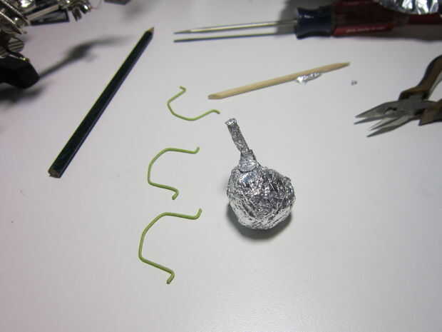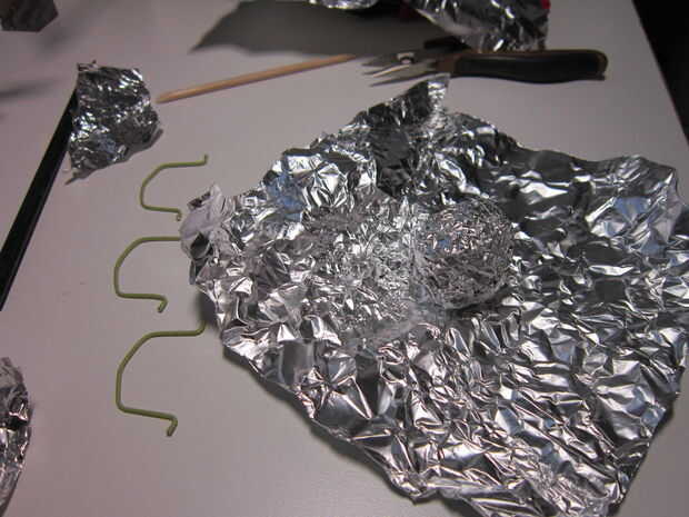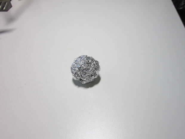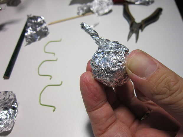Luego tome otro pedazo de papel de aluminio y coloca la bola en él y traer para arriba alrededor de él. Entonces me torcí la parte superior para obtener parte de la madre de mi criatura. Usé un par de pinzas de alambre para flaco lo suficiente para mí para trabajar con. No apriete demasiado o hará la hoja quebradiza y se caen.