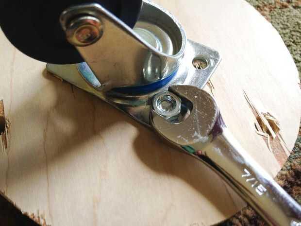 Tendrás que repetir para cada rueda en el engranaje, y una vez terminados los tres necesitará ajustar las tuercas de arriba y abajo de los pernos a la rueda para empujar apenas fuera de la base.