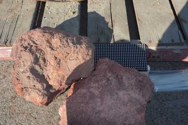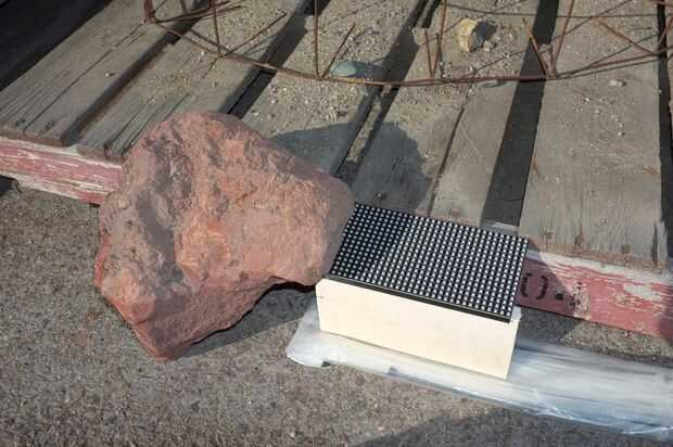 Ahora, estéticamente era importante para mí para no ver los bordes irregulares de la exhibición de LED; Quería sentir más orgánico para agregar a la ilusión de que estaban mirando en un portal de algún tipo. Mi primera idea fue utilizar rocas alrededor del exterior para construir efectivamente un muro que sobresale por los paneles de LED.