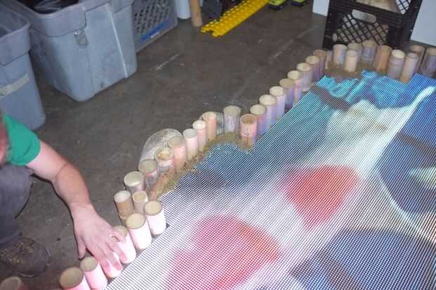 Para llenar vacíos experimentamos con embalaje de musgo, que con el TLC un poco se ve muy bien. Esto es algo que tiene que hacer en cada instalación, pero no terriblemente lento.