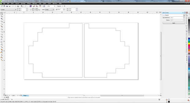 Así que tomé a CorelDraw, hizo una caja del tamaño del panel LED y comenzó a apilarlos junto hasta que se me ocurrió la forma anterior. Agradable y podrían divide en dos 4'x 4' secciones que faciliten la corte en la Metabeam.