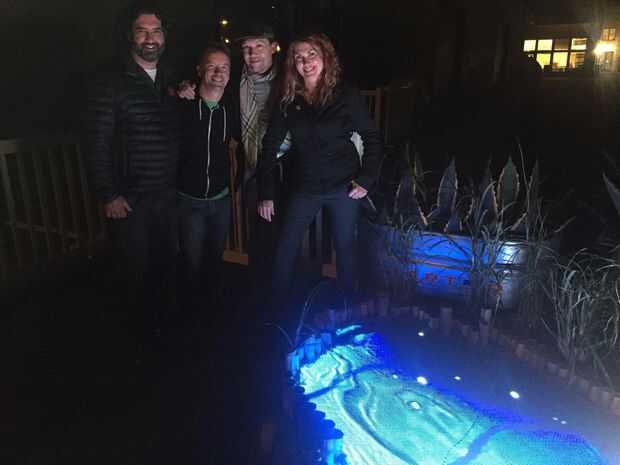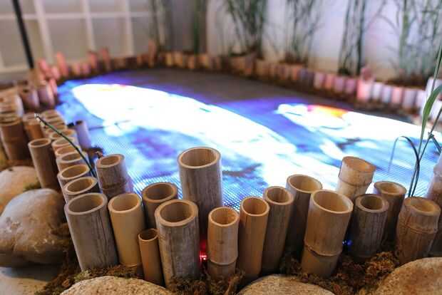 Algunas plantas y rocas más adelante y tenemos una magnífico video instalación de estanque de Koi!
