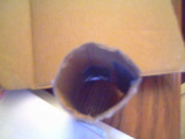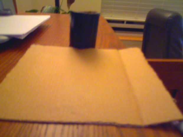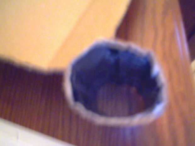 A continuación un extremo largo del palillo en el agujero más con el agujero en el cilindro en la parte inferior y asegúrese de que su centrado. Luego poner las esquinas opuestas en los agujeros más pequeños en la parte superior. Queremos fijar para la esquina dos los baje los triángulos pequeños sobresale y con cinta adhesiva hacia abajo pero el borde sólo una cinta.