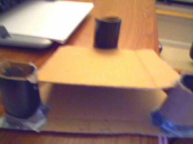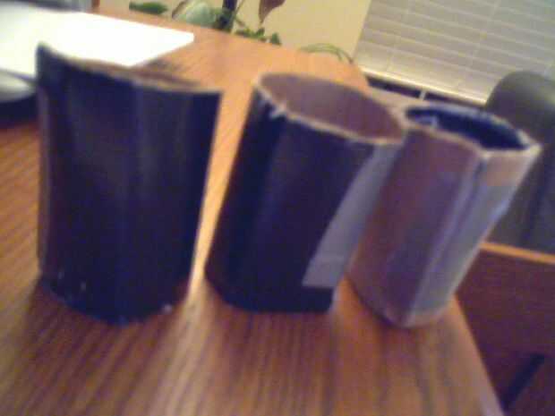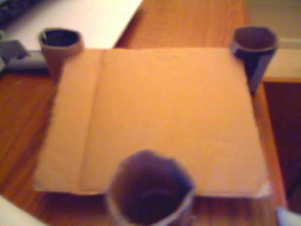 Ahora nos solo con cinta adhesiva todos los cilindros en las esquinas del triángulo base. Esto es para darnos un buen comienzo estable y recta en los apoyos.
