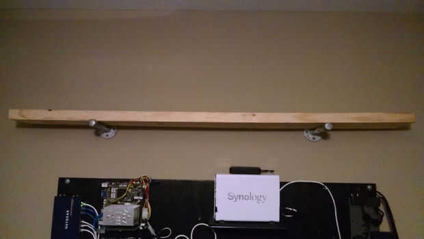 esto es un quicky instructable para completar mi Industrial buscando estante colección.  Aquí están los medios estantes y estantes de equipo.Necesitábamos un lugar para poner el altavoz de canal central, y no cabe en nuestro soporte de la TV (y realm