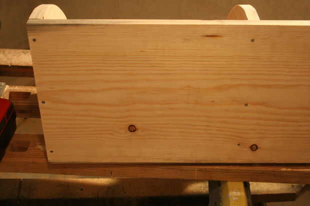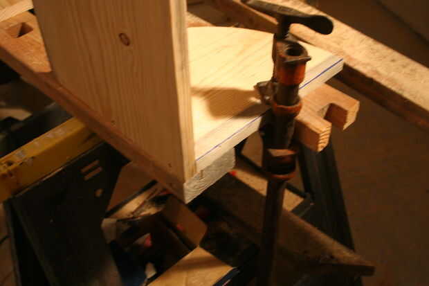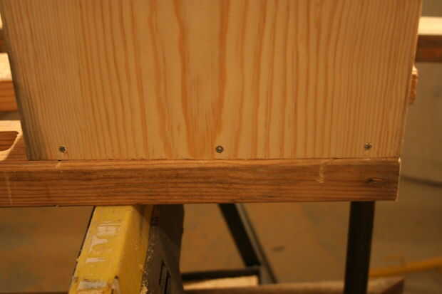 Mientras que sí creo con tornillos es casi lo mejor para utilizar para el montaje de madera, también creo en la perforación de agujeros. Por lo tanto, usé una 3/32 broca y algunos tornillos de ajuste exterior 1 5/8 "x 7 impulsión cuadrada. Tres por cada lado por estante.