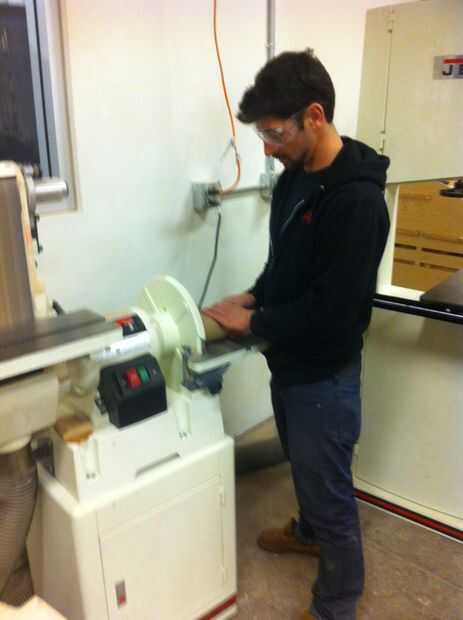 A PIE SOBRE TIENDA DE TECNOLOGÍA Y USO LA SIERRA BANDA CORTE QUE RUEDA PARA ARRIBA EN LA SECCIÓN MÁS PEQUEÑA